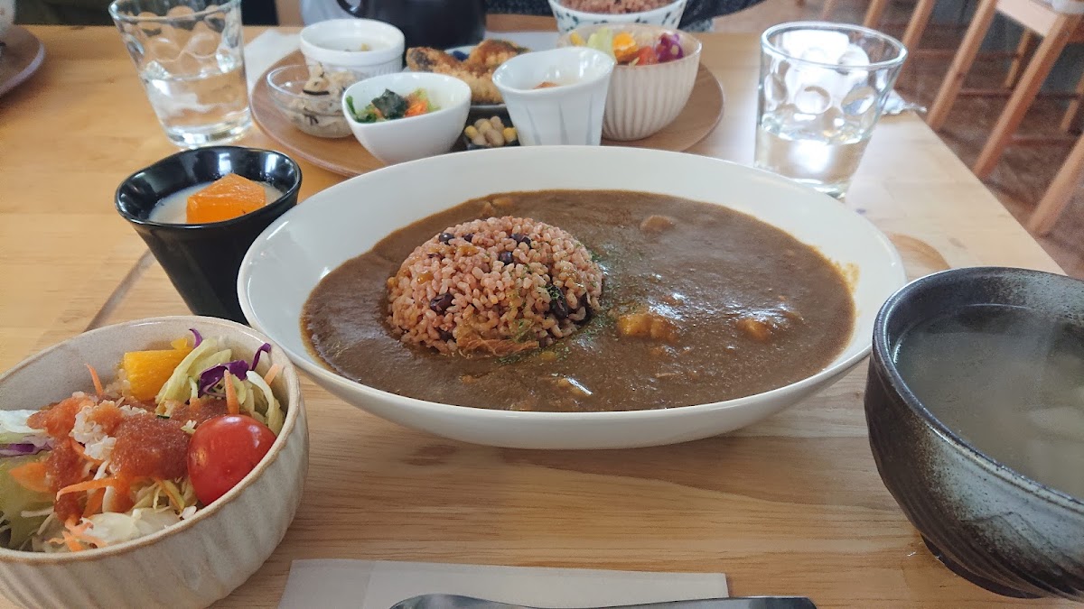 For those seeking a comforting yet wholesome delight, try the チーズカレーセット (Cheese Curry Set), served bubbling hot in a skillet with a base of 発酵玄米 (Fermented Brown Rice). The flavors blend harmoniously, delivering a satisfying taste while being kind to your body. The dessert options, like the 豆腐プリン (Tofu Pudding), provide a sweet finish without overwhelming the senses, making it a fantastic choice after a wholesome meal.